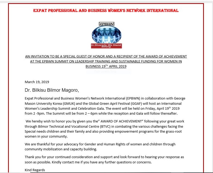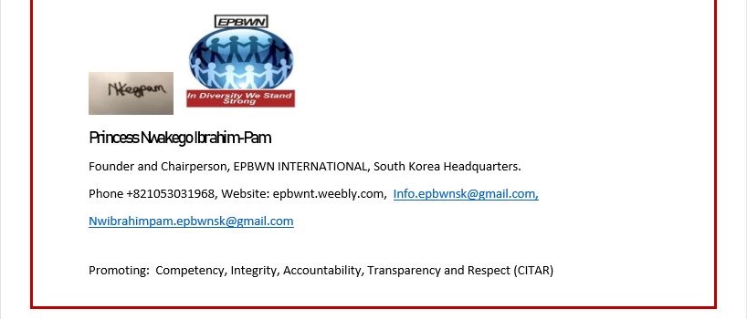 EPBWN International, founded by Princess Nwakego Ibrahim-Pam in Tunis on April 2013, with its headquarters in Songdo, South Korea, was founded to support educated expatriate spouses who, due to language barriers and other constraints related to expatriate residency and diplomatic status, were unable to work or start their own businesses.